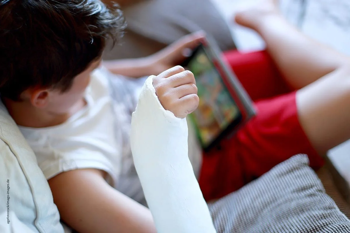 Schmerzen und Bewegungseinschränkung geben erste Hinweise auf einen Bruch. Auch die Schilderung des Verletzungshergangs ist meist hilfreich. Ob es sich um einen Grünholzbruch oder eine "richtigen" Bruch handelt, erkennt die Ärzt*in bei älteren Kindern und Jugendlichen im Röntgenbild. Bei jüngeren Kindern ist das Röntgenbild häufig nicht aussagekräftig, weil die Knochensubstanz noch nicht genügend ausgebildet ist, um röntgendicht zu sein. Hier greift die Ärzt*in zum Ultraschall, um den Knochenbruch nachzuweisen.